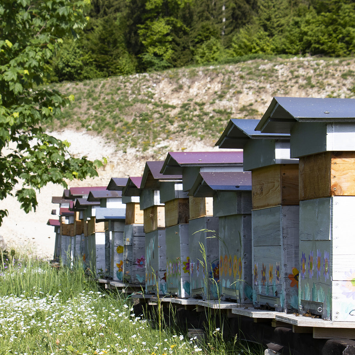 Afin de préserver la biodiversité et en collaboration avec un apiculteur local, 12 ruches ont été installées aux alentours de nos locaux à Morbier, Jura. Le miel récolté et mis en pot sur place est ensuite offert à nos clients et partenaires.