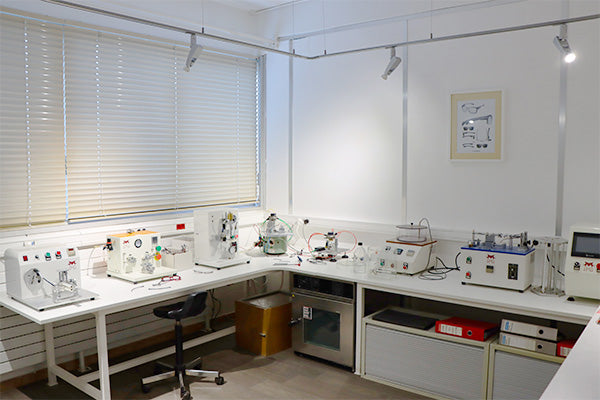 La Maison MOREL possède son propre laboratoire qualité agréé, géré par une équipe spécialement dédiée à la recherche et au développement, formée par Alutec. Toutes les lunettes y sont passées au crible, chaque élément étant soigneusement analysé : entre autres, la fiabilité des charnières, la résistance des pièces mécaniques et la solidité de l’acétate… Les lunettes de notre Maison ne sont mises sur le marché qu'après avoir rempli tous les tests intensifs et exigeants du laboratoire qualité.